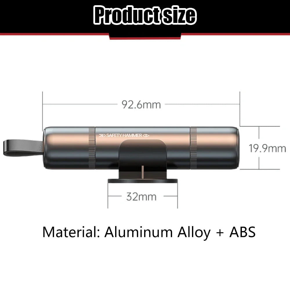Compact et fabriqué en aluminium résistant aux fortes températures, il se fixe facilement dans l’habitacle pour rester accessible à tout moment. Une lame en acier inoxydable cachée dans le corps de l’outil permet également de couper la ceinture de sécurité rapidement en cas de blocage, tout en protégeant les doigts grâce à son design sécurisé en forme de U.