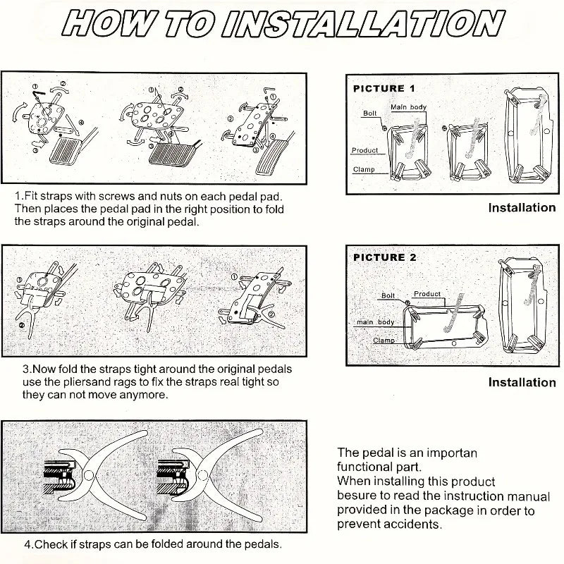 L’installation est très simple : aucun perçage nécessaire. Les vis et clips fournis permettent de fixer les pédales directement sur les pédales d’origine.